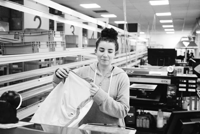 To address this, TrulyCircular.com integrates water-based printing methods compatible with fibre recovery processes. Ink selection is aligned with the same circular criteria as fabric choice: longevity during wear, compatibility during remanufacture.